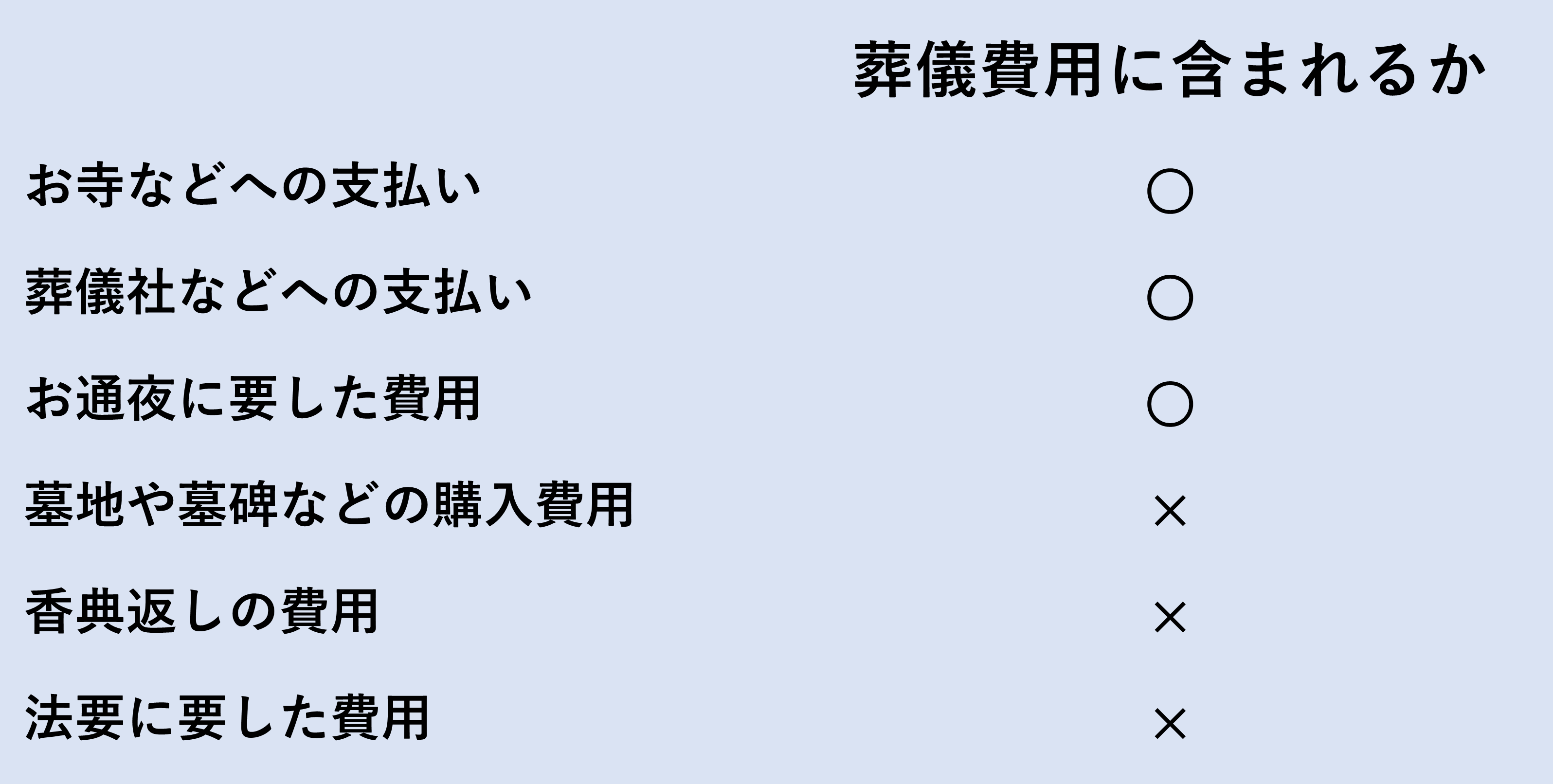 d 墓地や墓碑などの購入費用/e 香典返しの費用/f 法要に要した費用 等は、葬式費用に含まれないとされています。
